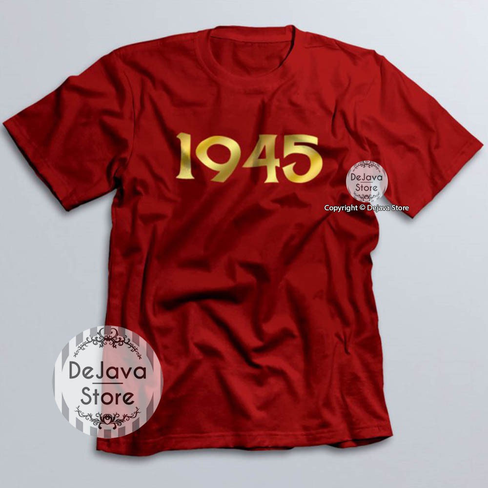 Kaos Distro Indonesia 1945 Gold Baju Kemerdekaan Agustus Cotton Combed 30s Unisex Premium | 1597
