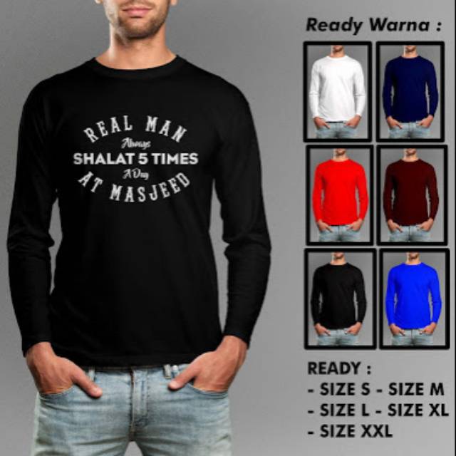 KAOS DAKWAH ISLAMI LENGAN PANJANG REAL MAN ALWAYS SHALAT 5 TIMES A DAY AT MASJEED KEREN