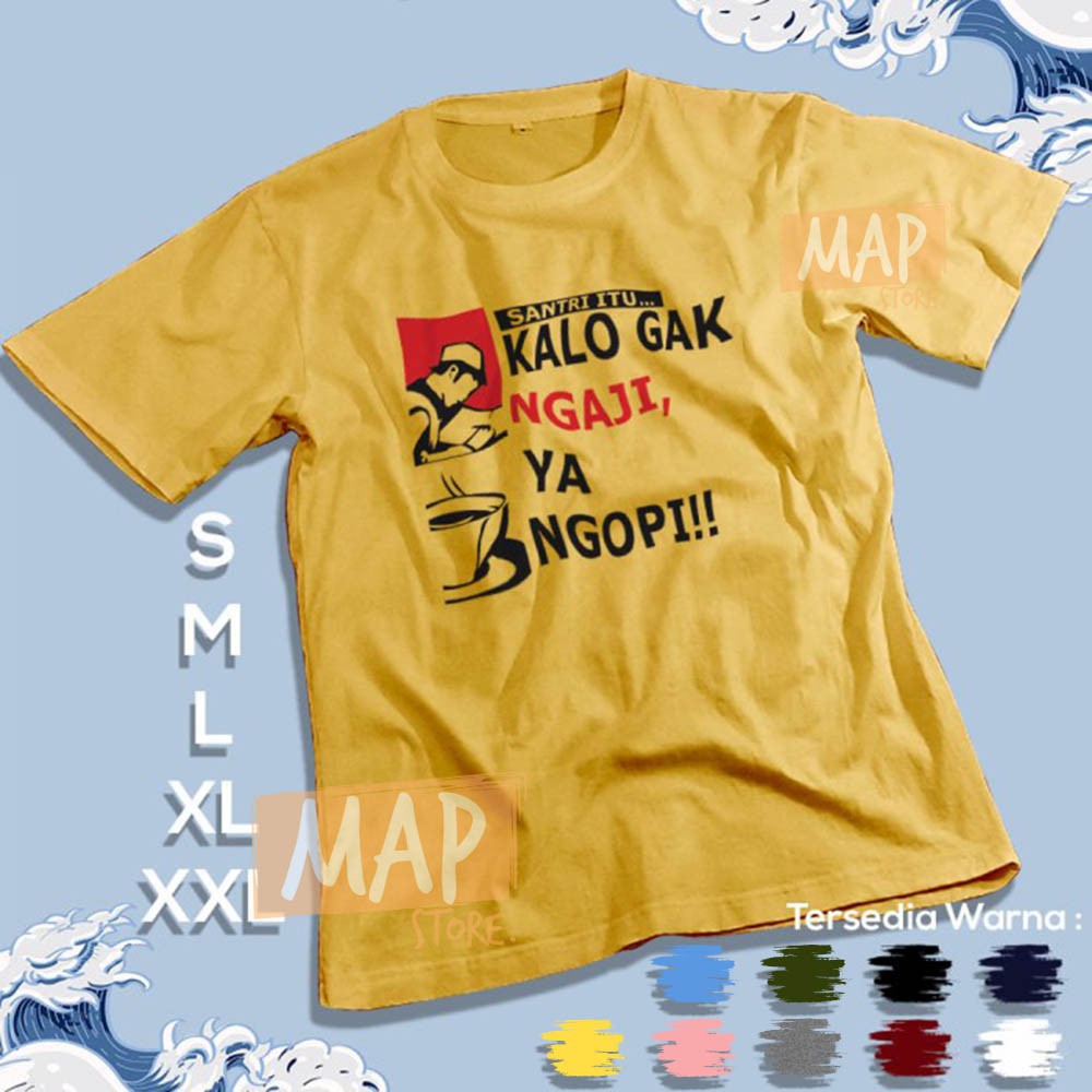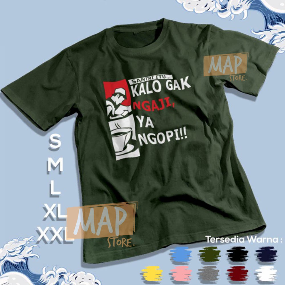 Alasan kenapa harus beli Kaos Dakwah SANTRI G NGAJI YA NGOPI - Baju Distro Muslim Islami Cotton Combed 30s | 2023 sekarang